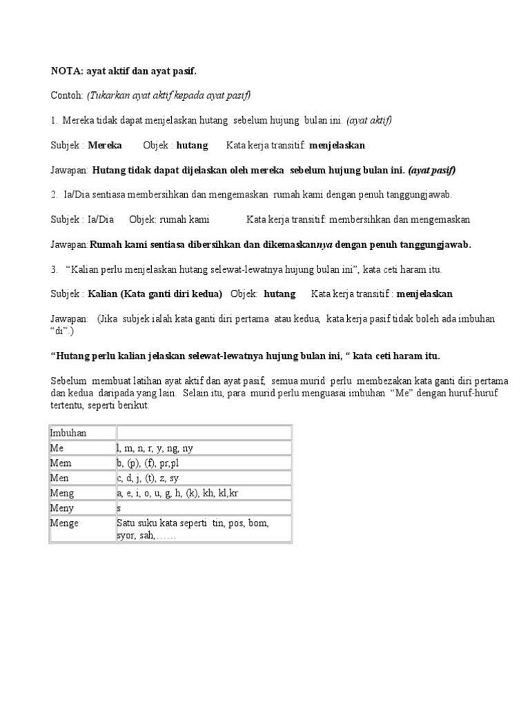 Latihan Ayat Aktif Dan Ayat Pasif Pdf